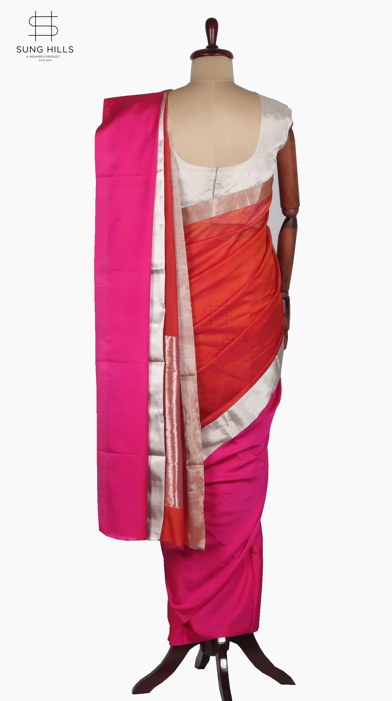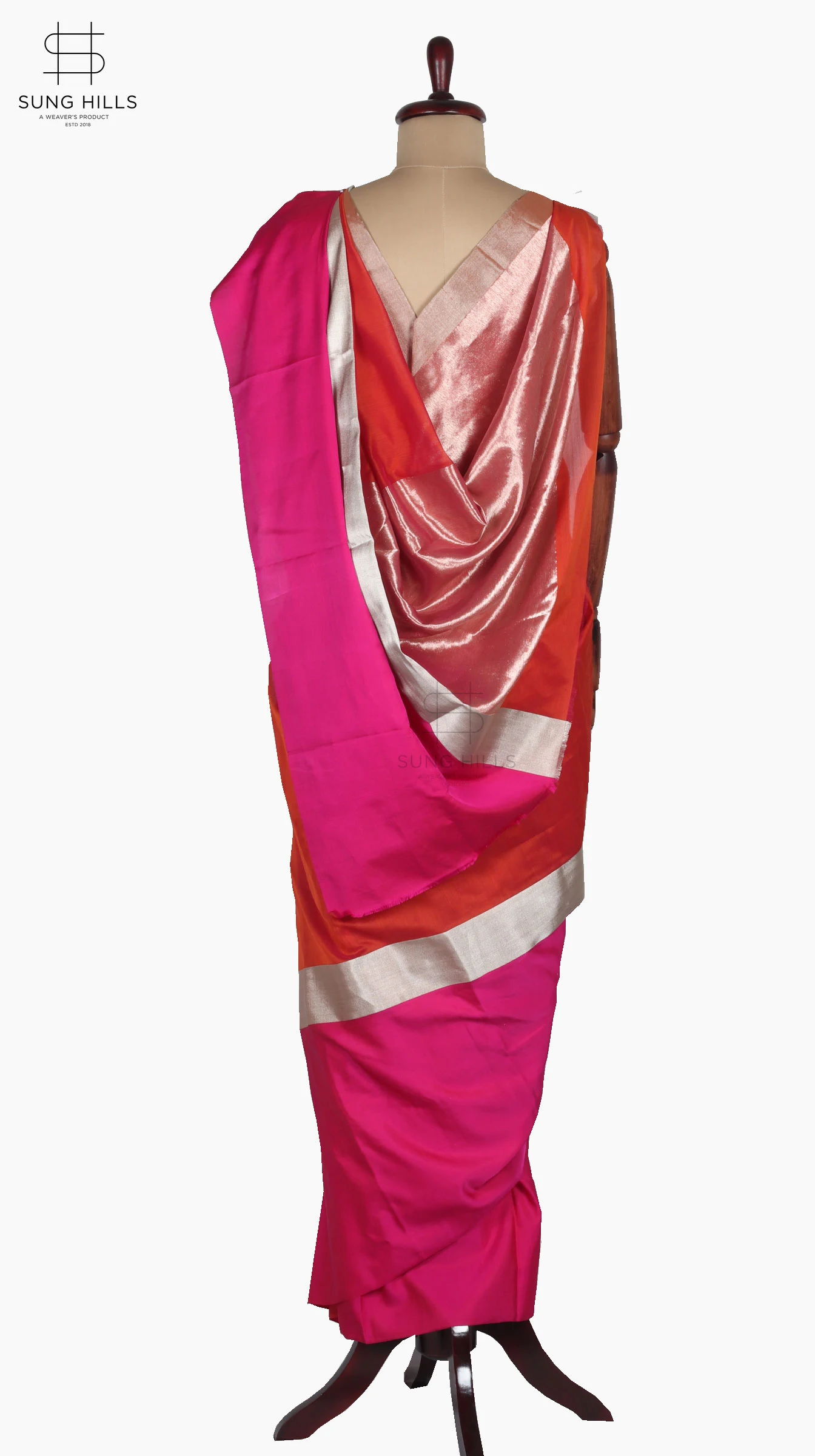 Tags: Chanderi saree, Direct from Weaver, handloom saree, Kesri Orange Saree, Mashru Saree, Raani Pink Saree