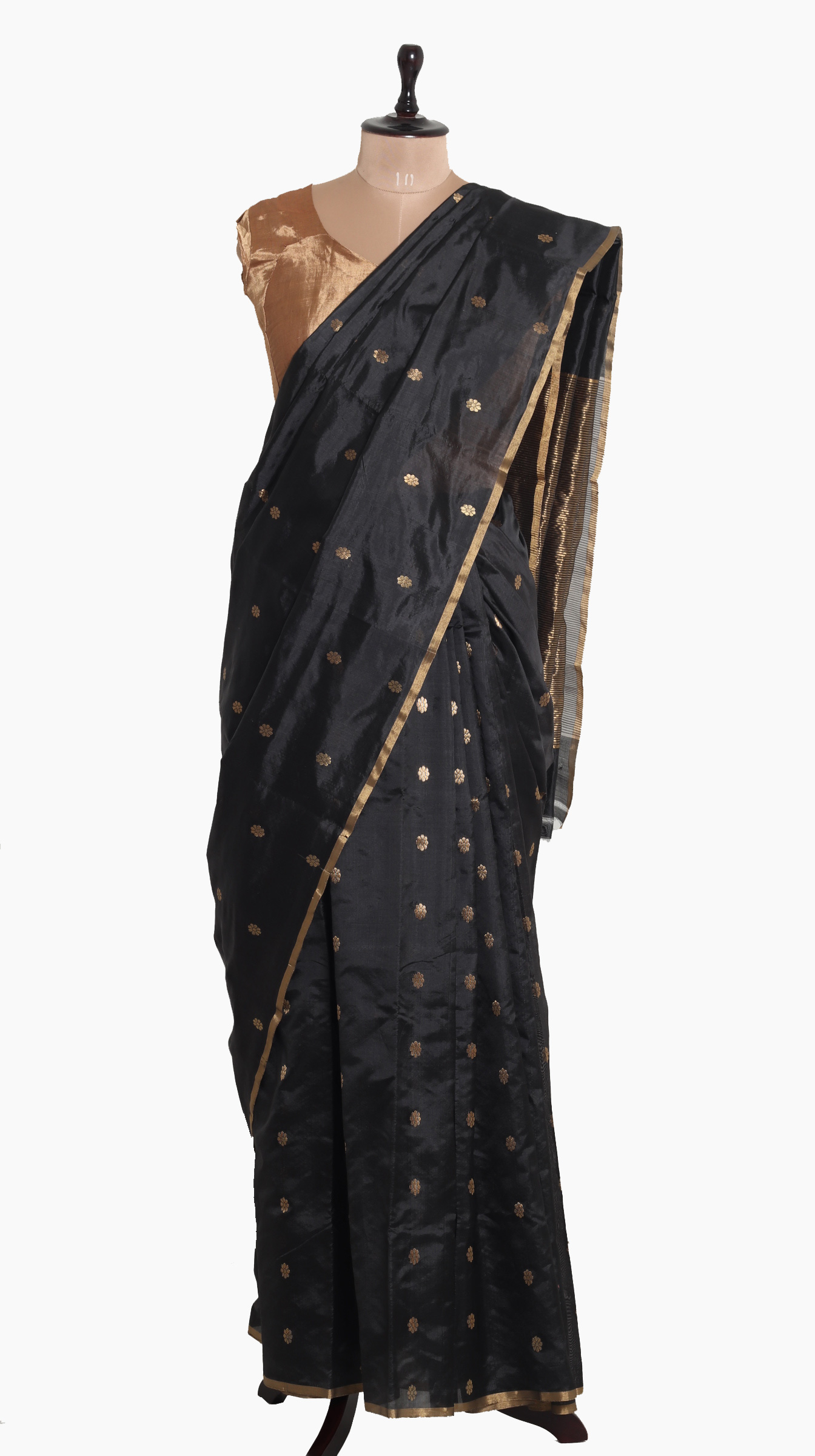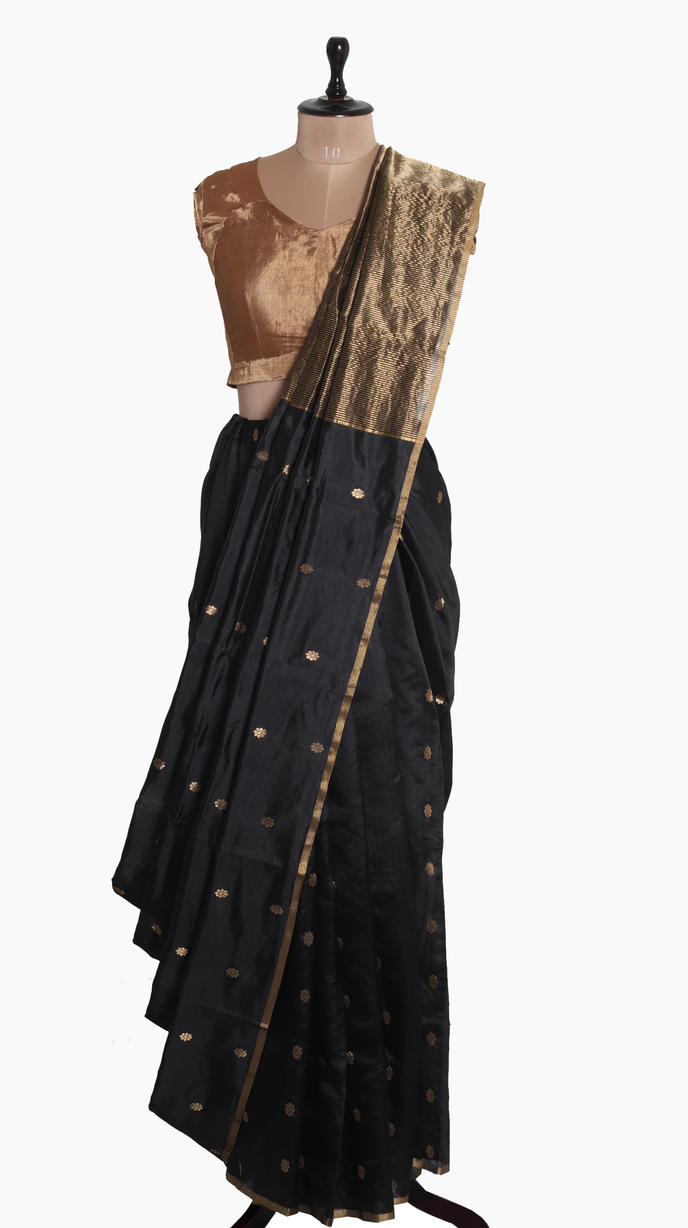 Tags: Chanderi Black Saree, chanderi mogra buta saree, Chanderi saree, chanderi silk saree, chanderi silk sarees madhya pradesh, Direct from Weaver, silk saree
