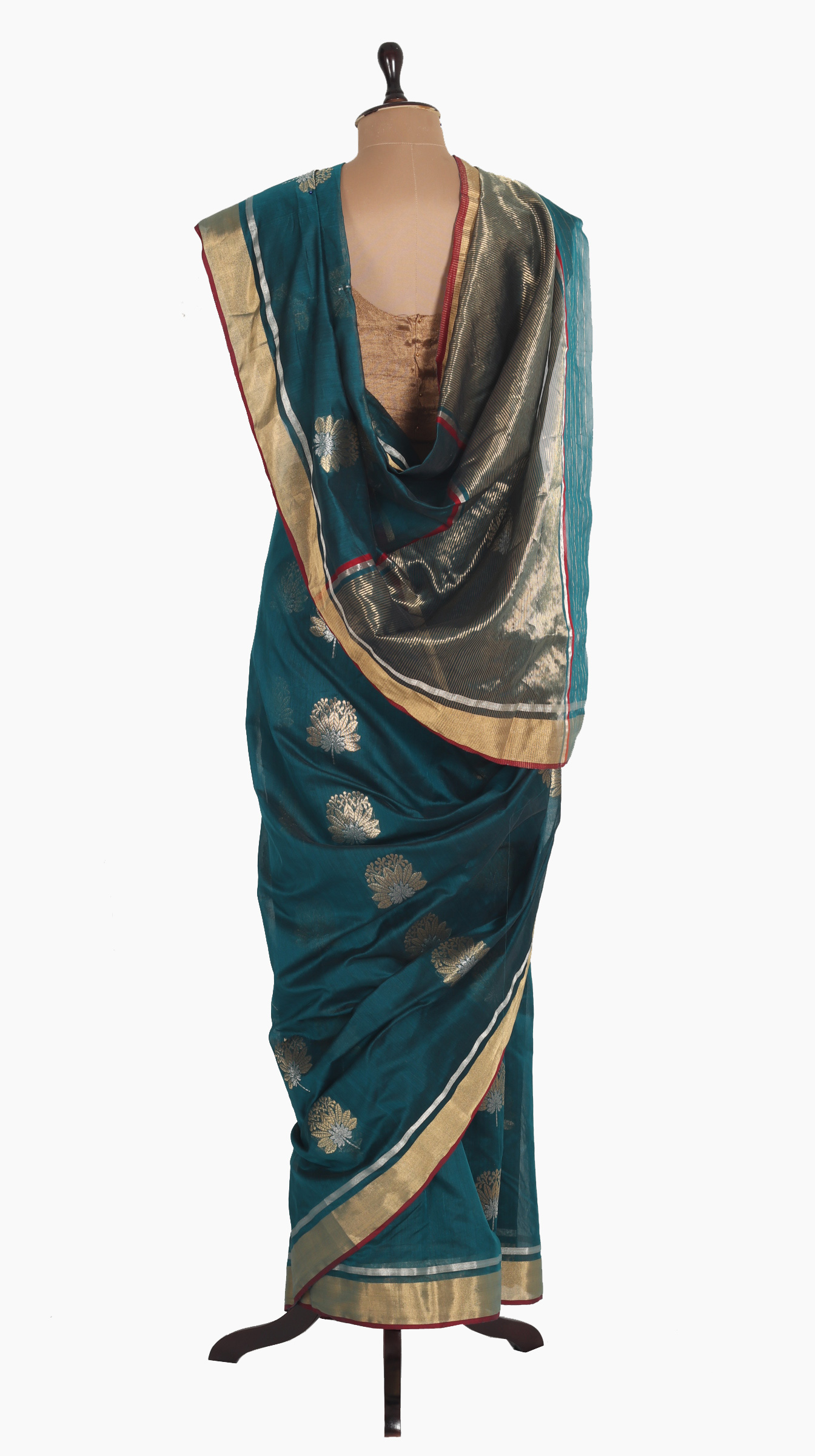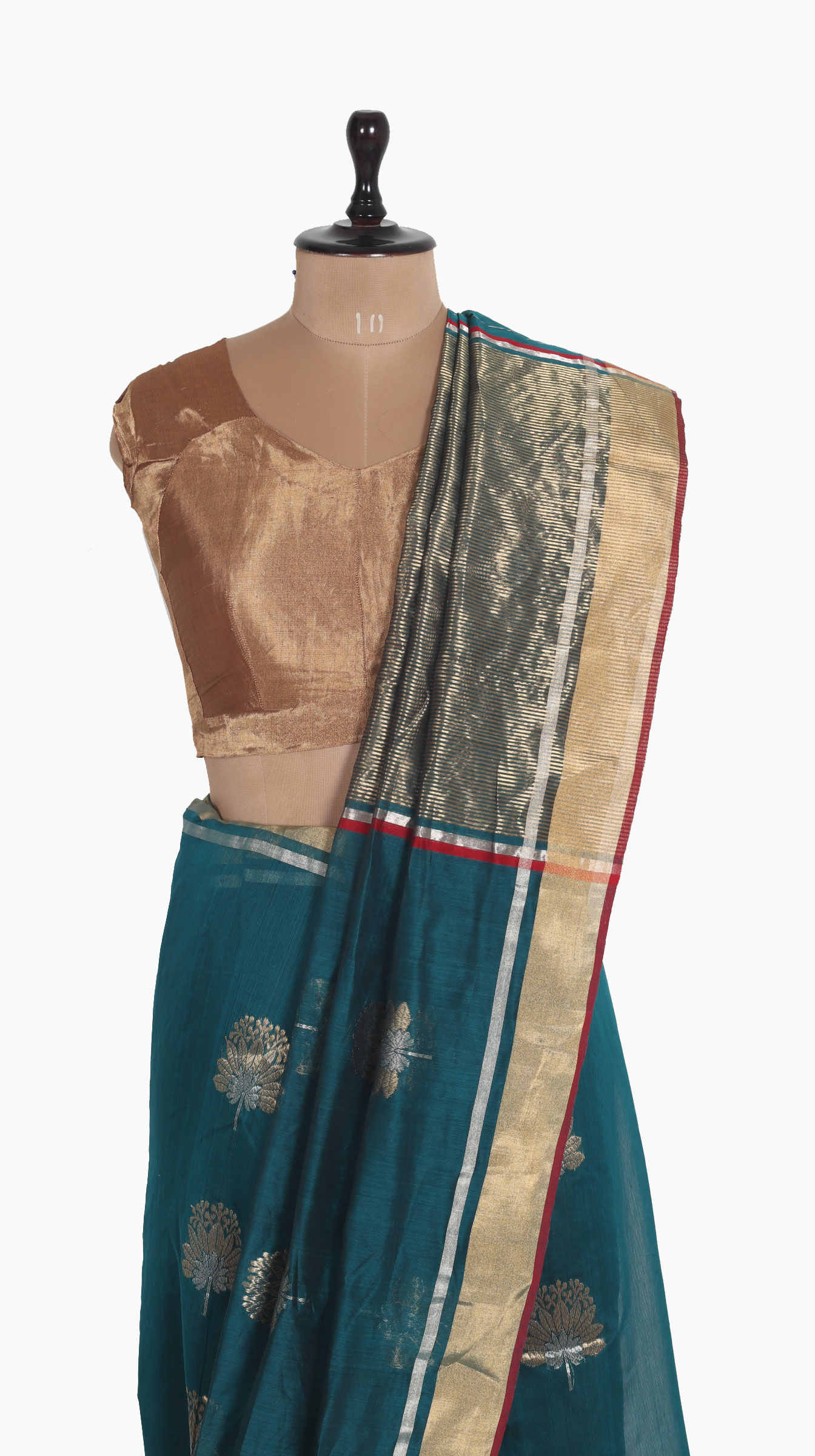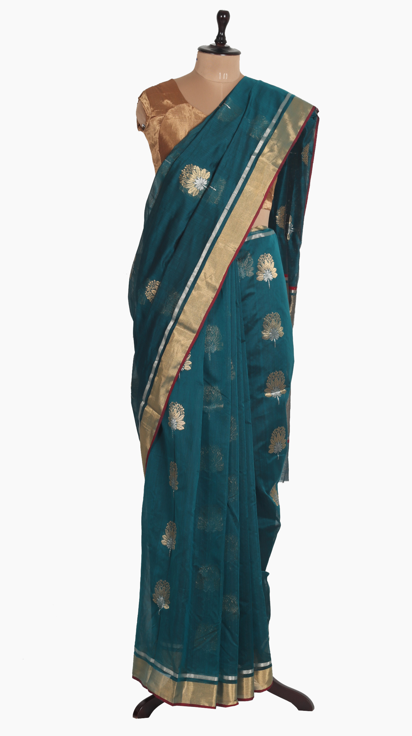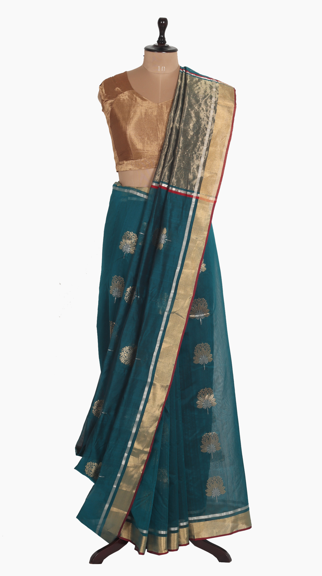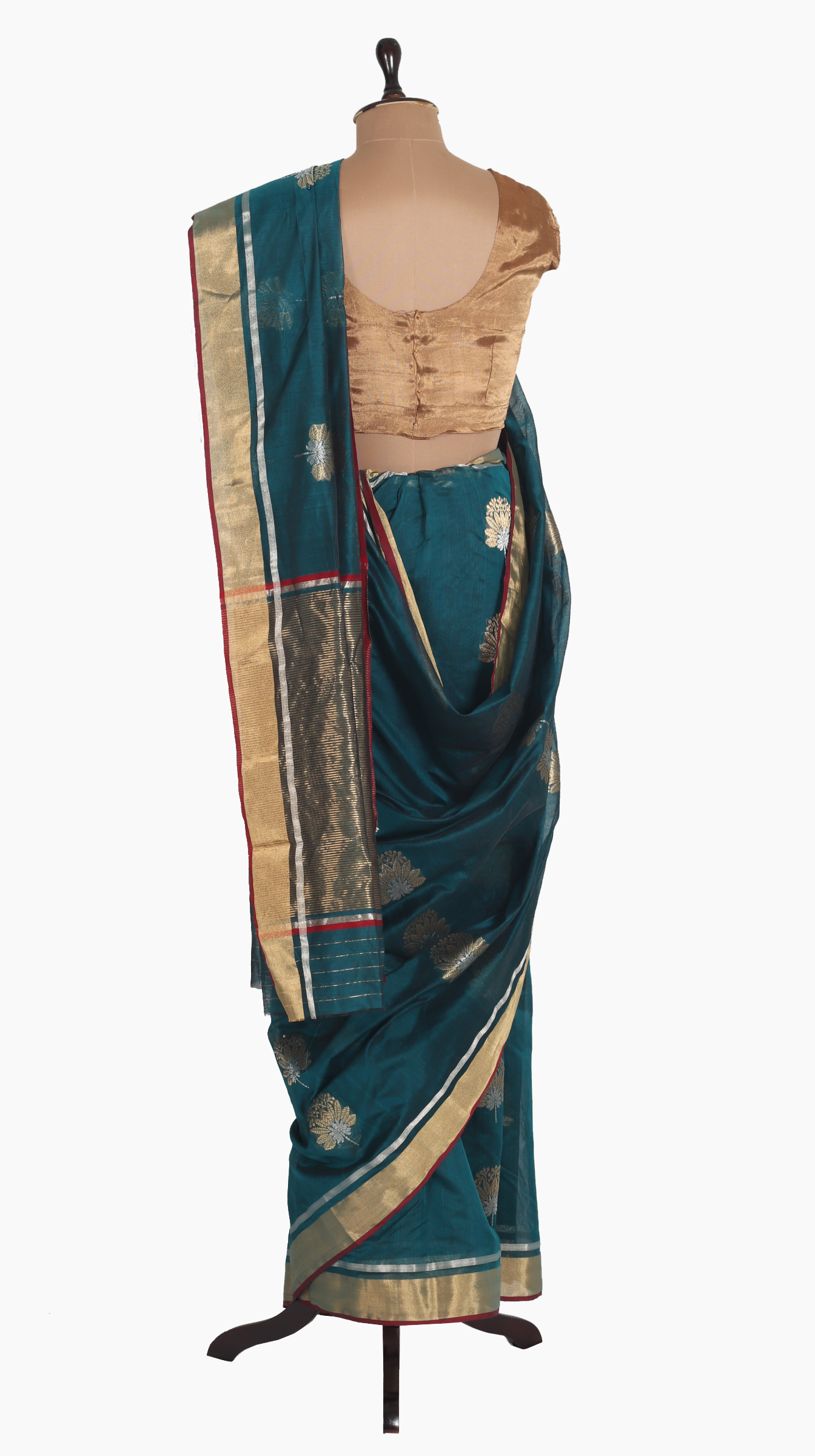 Nine Leaf Chanderi Saree With Golden and Silver zari kadwa work.