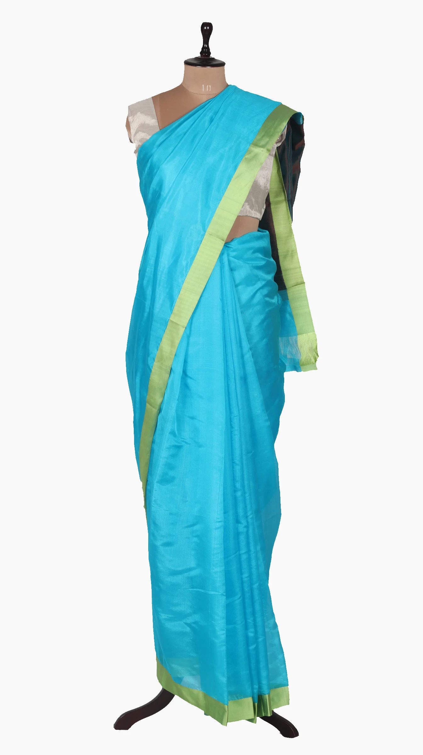 Yellow Mashru Border Sky Blue Chanderi Silk Saree